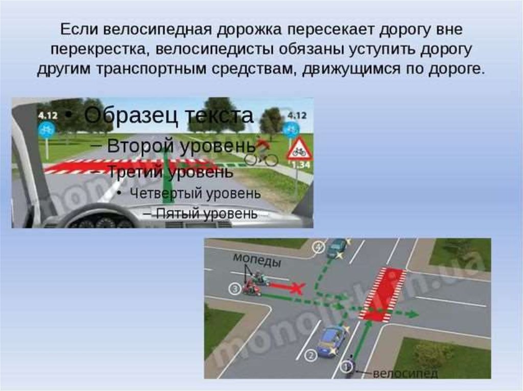 велосипедист может продолжать движение, пропустив троллейбусы, трамваи и автомототранспорт.