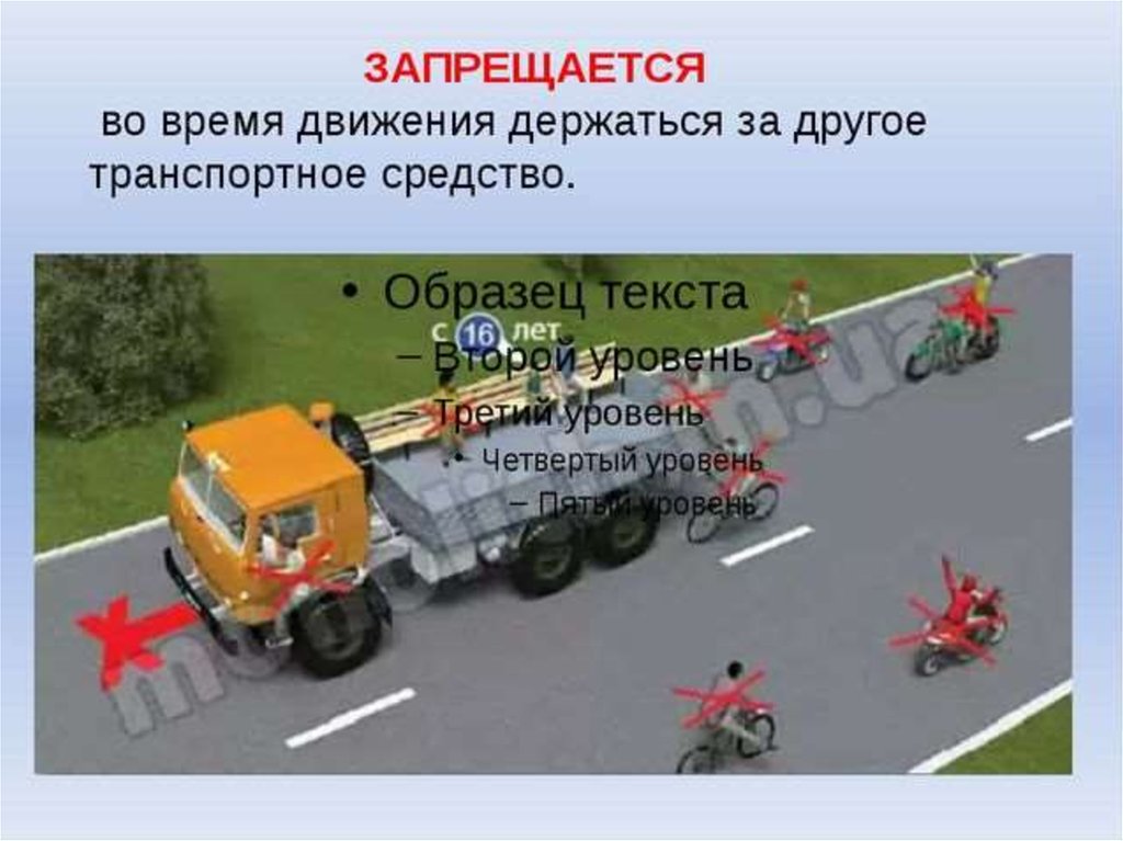 л) ездить группой на дистанции менее трех метров друг от друга и далее одного