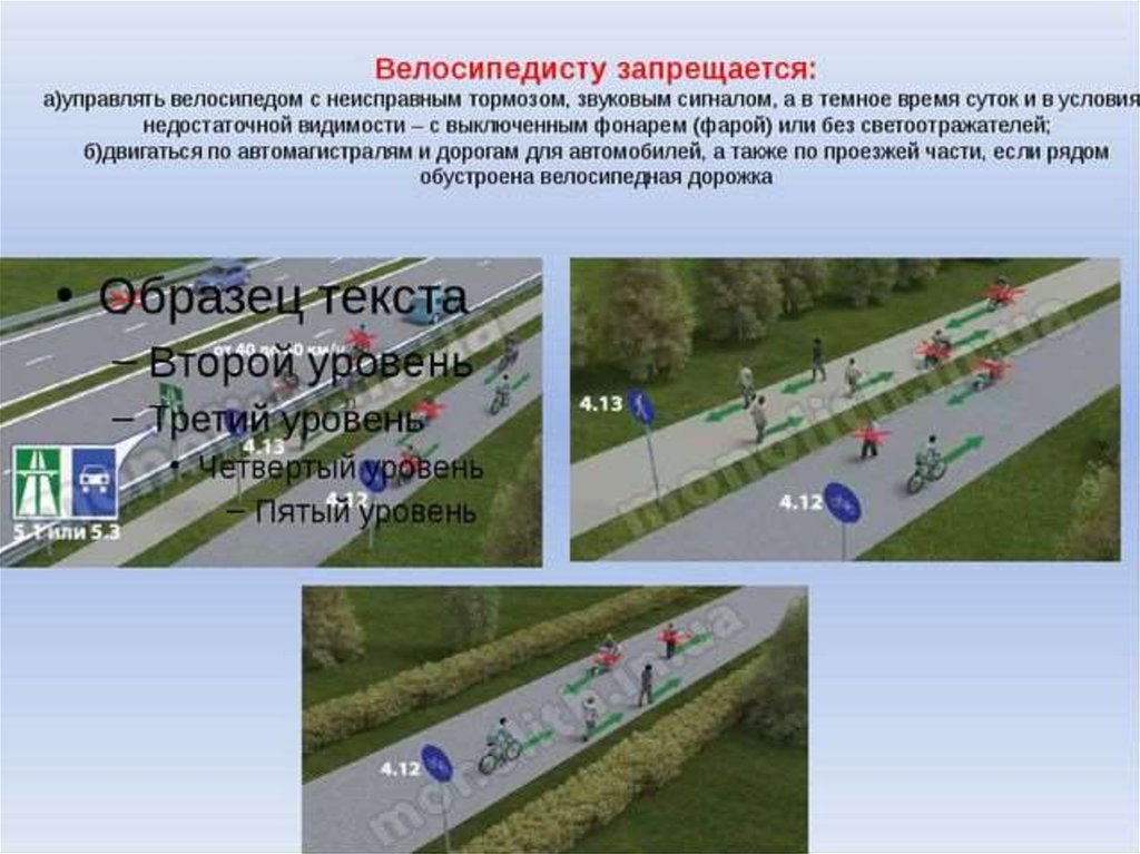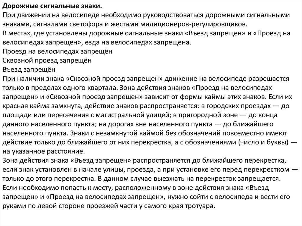 запрещен» и «Проезд на велосипедах запрещен», нужно сойти с велосипеда и вести его