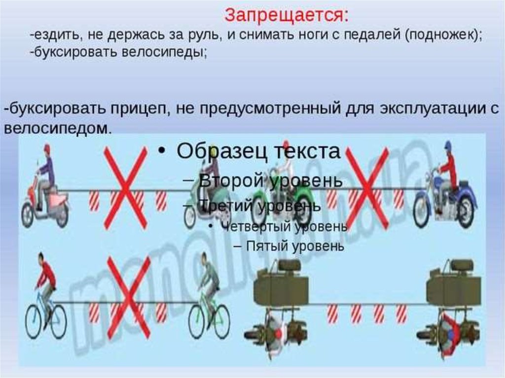 и) ездить на одноместном велосипеде вдвоем (за исключением перевозки