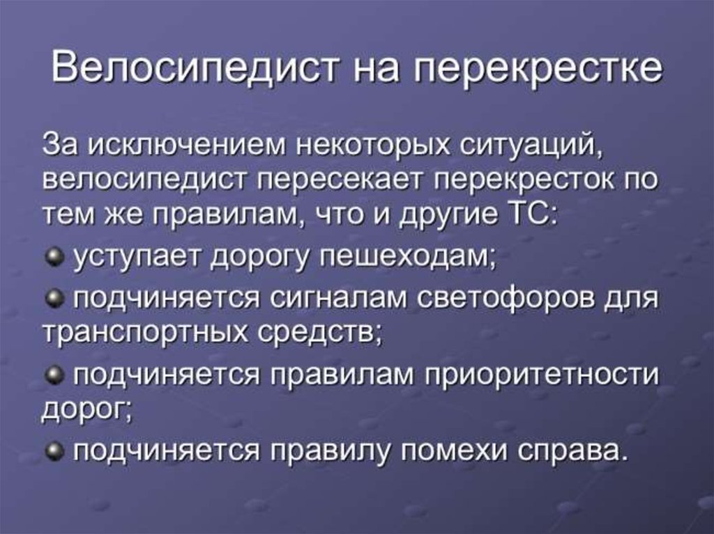 Проезжать перекресток в прямом направлении или направо велосипедист имеет право при