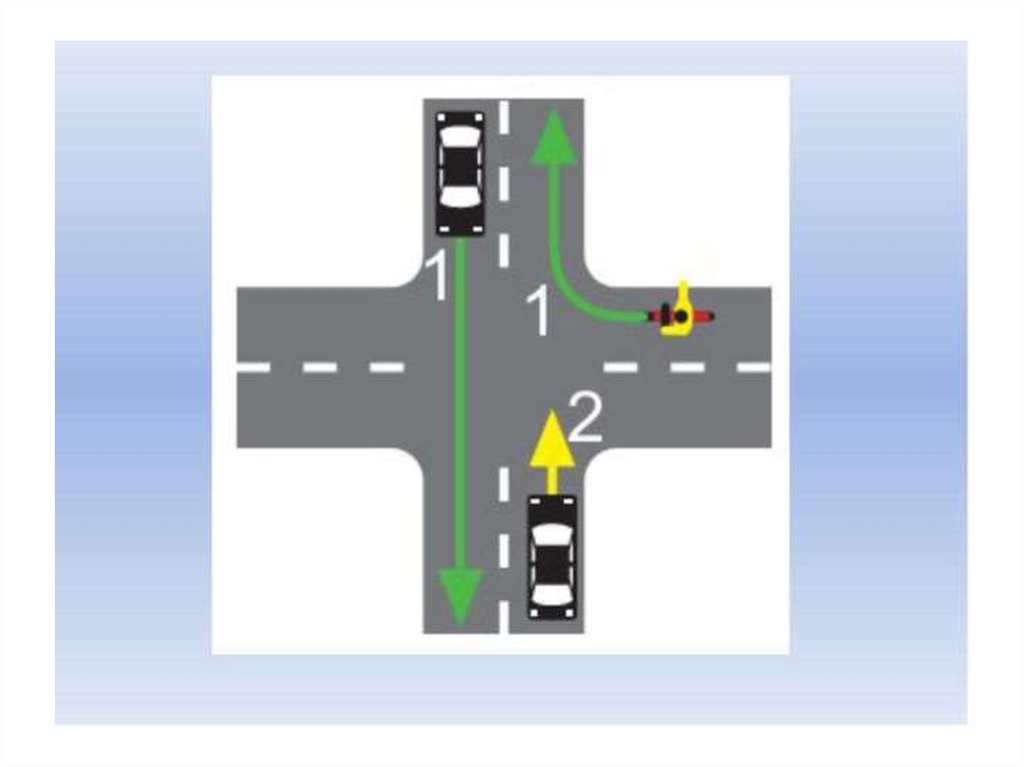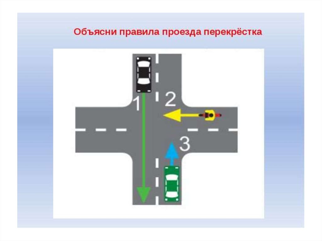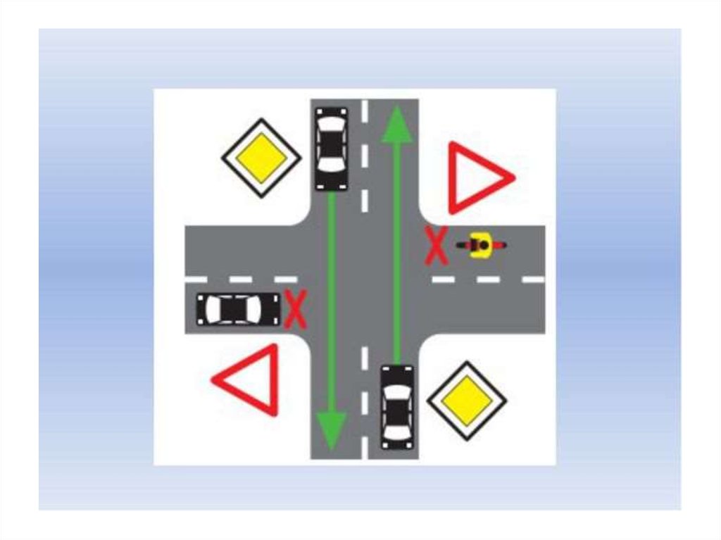 котором он обращен лицом или спиной к велосипедисту, проезжать через перекресток в прямом
