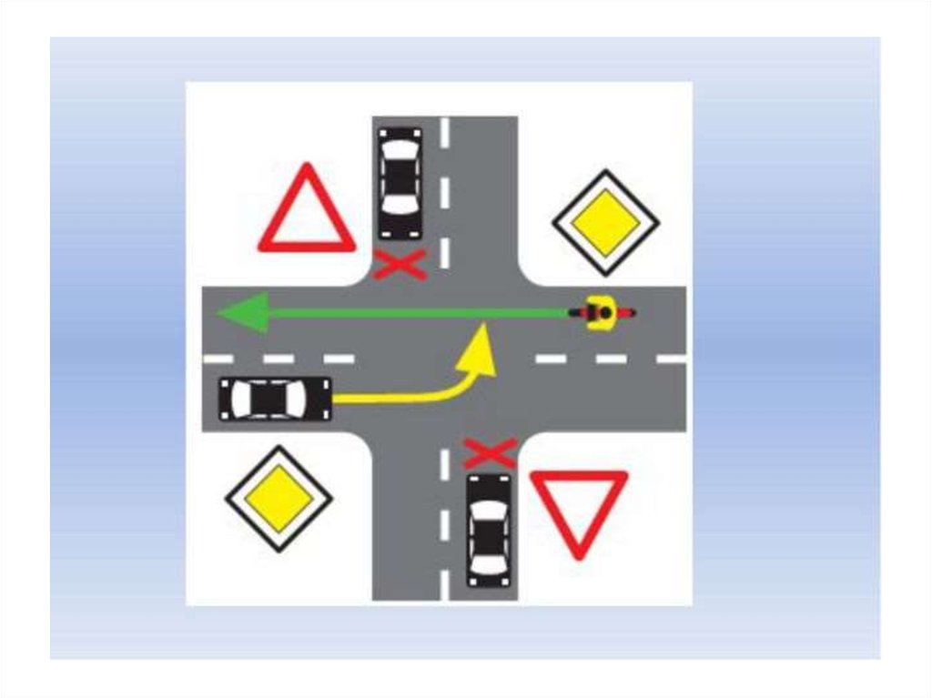 При желтом сигнале светофора или при соответствующем ему положении милиционерарегулировщика начинать движение через перекресток запрещено.