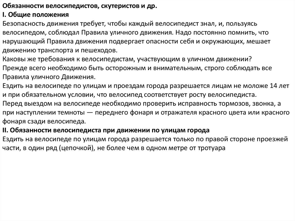 Обязанности велосипедистов, скутеристов и др.I. Общие положения