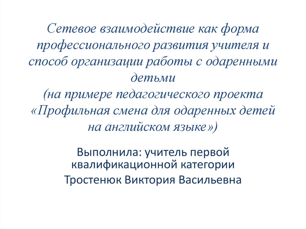 1. Сетевое взаимодействие как форма профессионального развития учителя и способ организации работы с одаренными детьми (на примере
