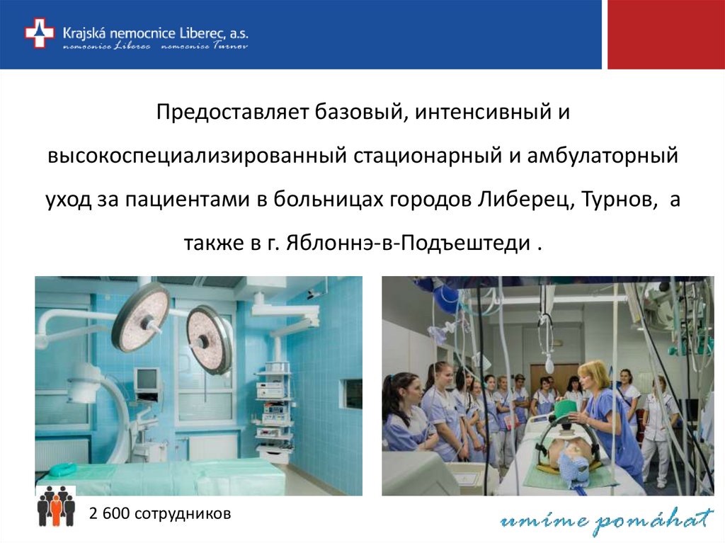 уход за пациентами в больницах городов Либерец, Турнов, а