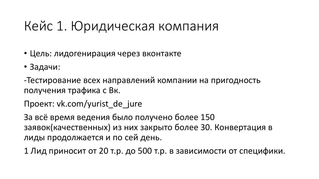 Малая часть примеров6. Кейс 1. Юридическая компания.