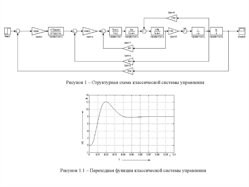 Рисунок 1 – Структурная схема классической системы управленияРисунок 1.1 – Переходная функция классической системы управления