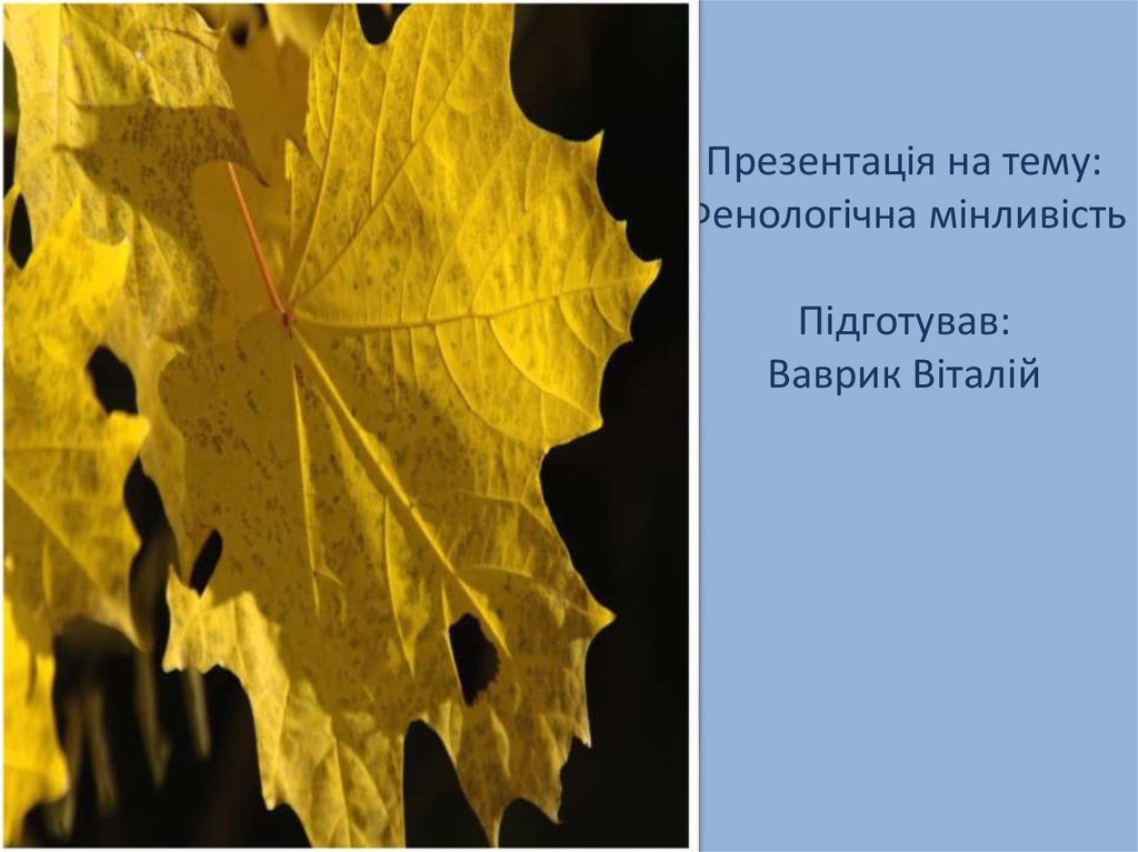 1. Презентація на тему: Фенологічна мінливість Підготував: Ваврик Віталій