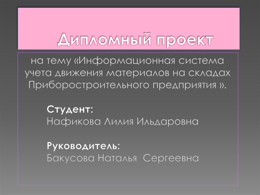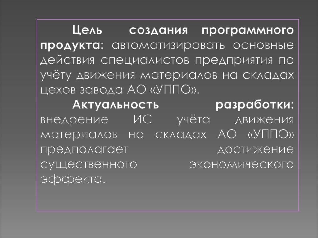 Информационная система учета движения материалов на складах Приборостроительного предприятия
