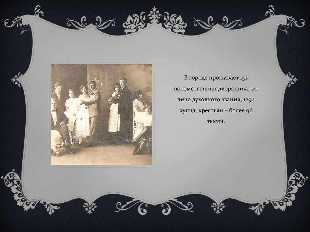 В городе проживает 152потомственных дворянина, 141