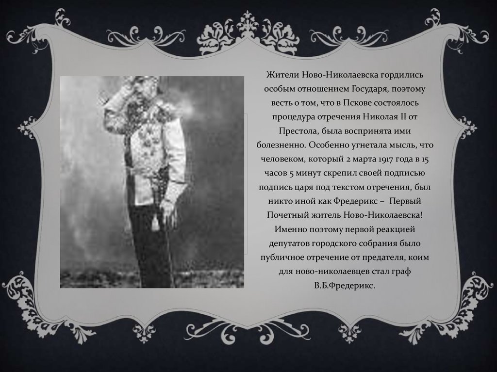 Жители Ново-Николаевска гордилисьособым отношением Государя, поэтому