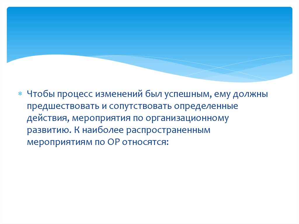 Чтобы процесс изменений был успешным, ему должныпредшествовать и сопутствовать определенные