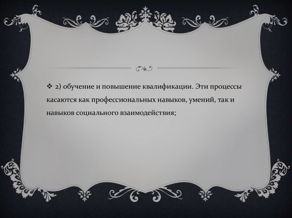 2) обучение и повышение квалификации. Эти процессыкасаются как профессиональных навыков, умений, так и
