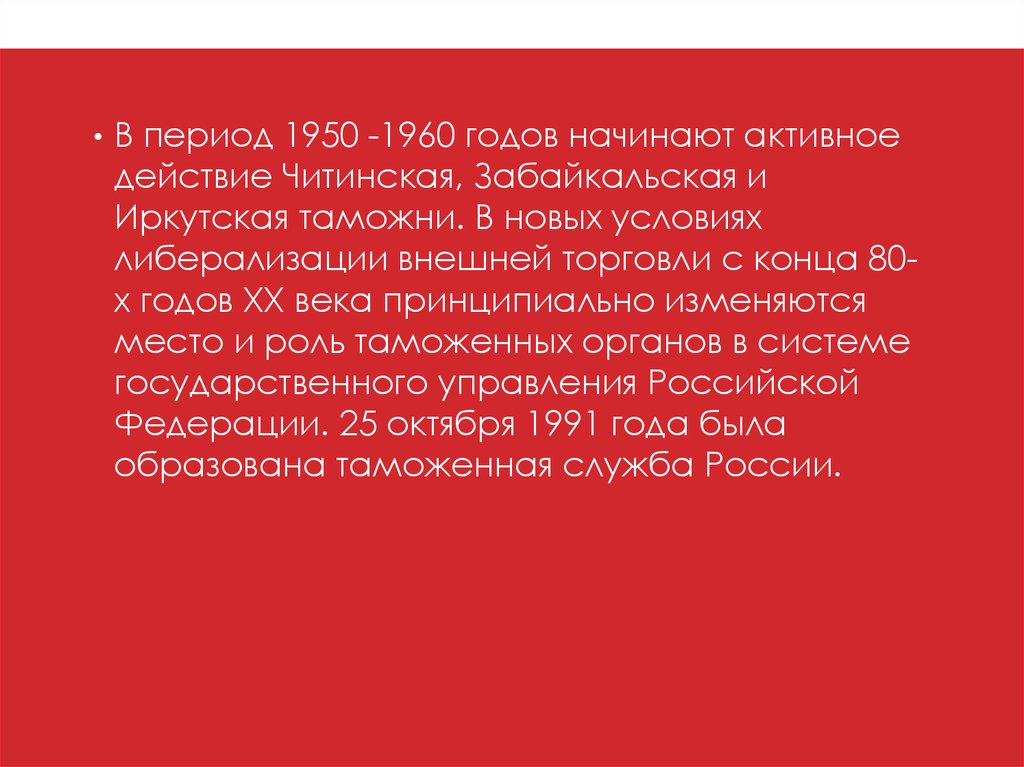 • В период 1950 -1960 годов начинают активноедействие Читинская, Забайкальская и