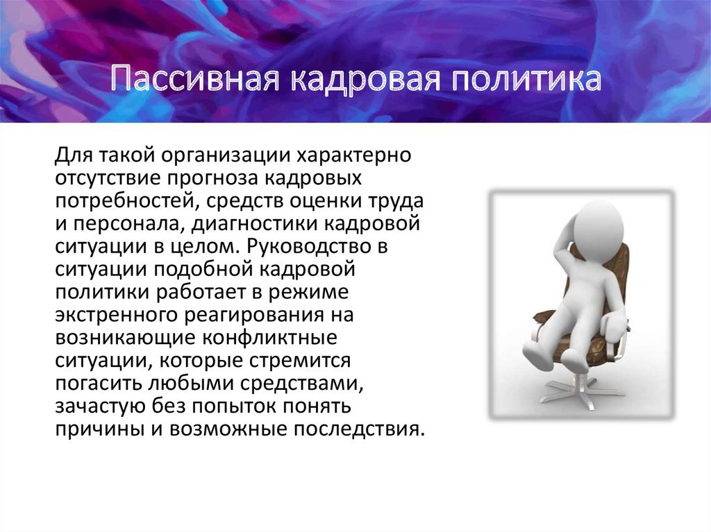 Пассивная кадровая политикаДля такой организации характерно