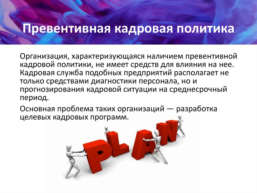 Превентивная кадровая политикаОрганизация, характеризующаяся наличием превентивной