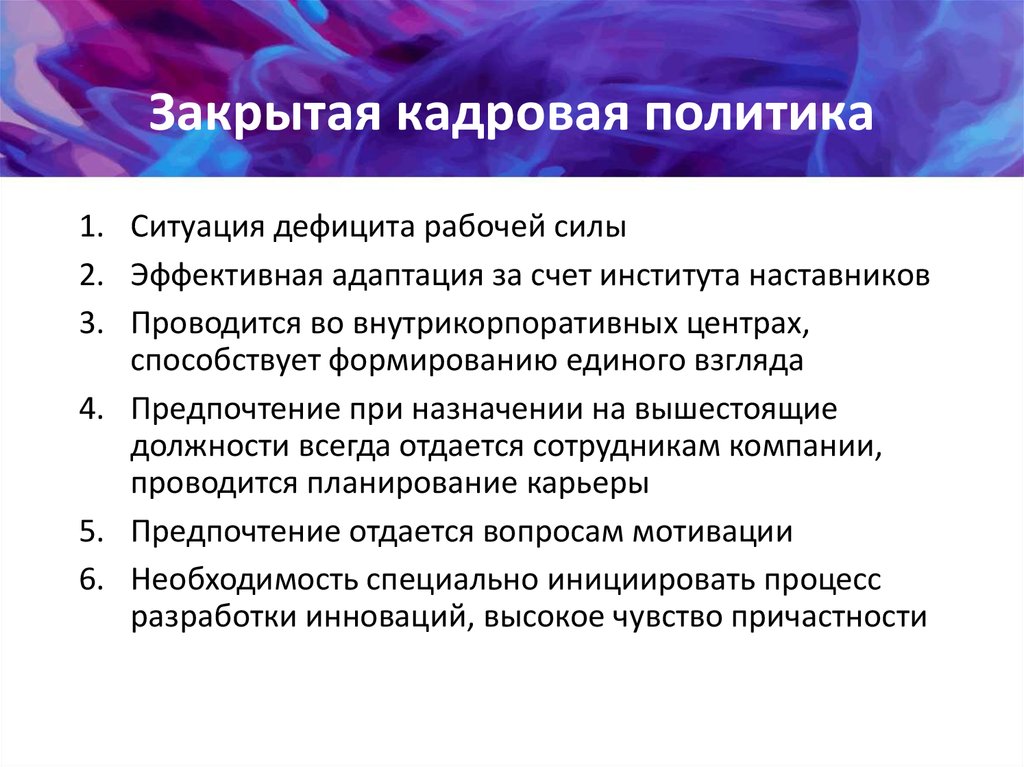 Закрытая кадровая политика1. Ситуация дефицита рабочей силы