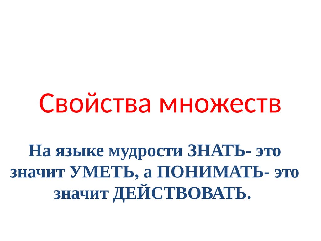 На языке мудрости ЗНАТЬ- этозначит УМЕТЬ, а ПОНИМАТЬ- это