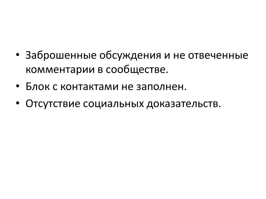 • Заброшенные обсуждения и не отвеченныекомментарии в сообществе.