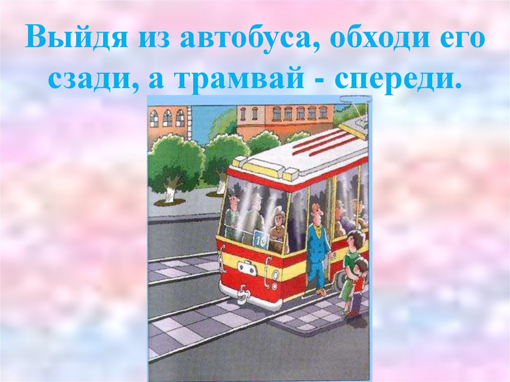 Выйдя из автобуса, обходи егосзади, а трамвай - спереди.