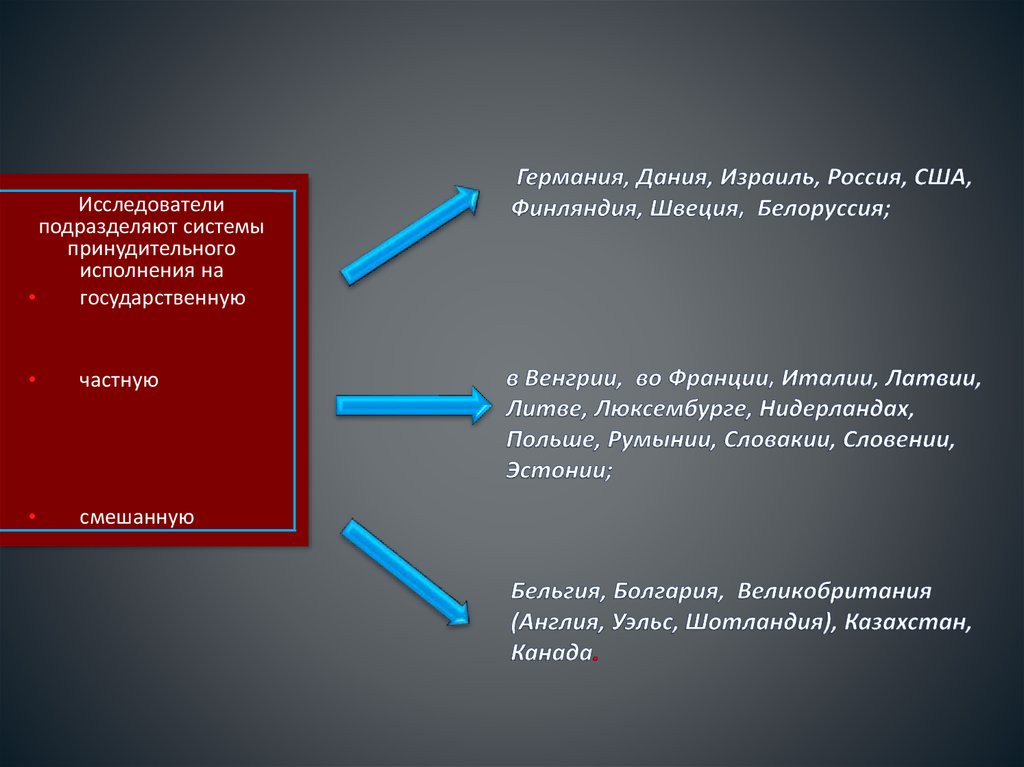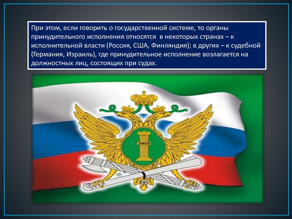При этом, если говорить о государственной системе, то органыпринудительного исполнения относятся в некоторых странах – к