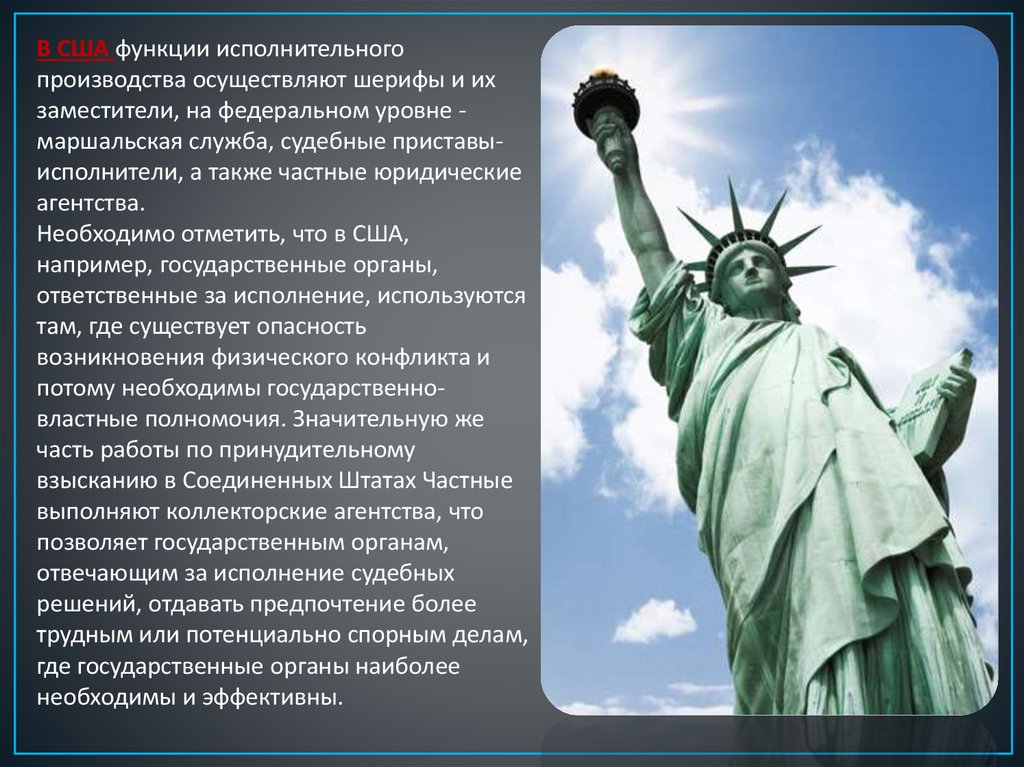 В США функции исполнительногопроизводства осуществляют шерифы и их