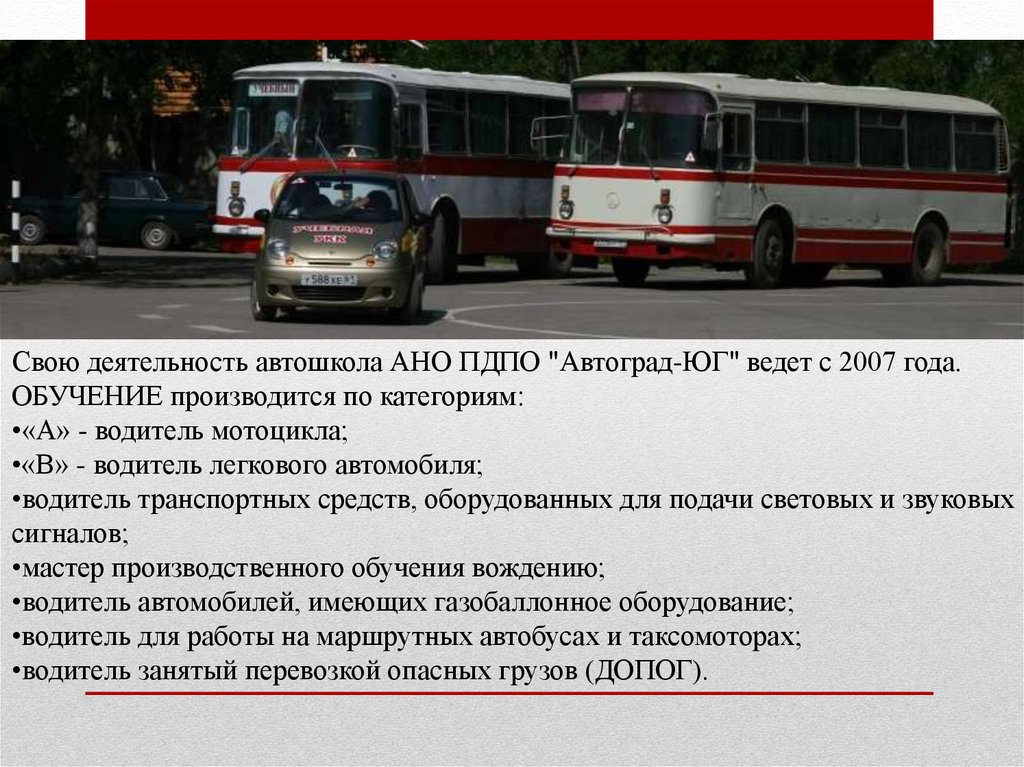 Свою деятельность автошкола АНО ПДПО "Автоград-ЮГ" ведет с 2007 года.ОБУЧЕНИЕ производится по категориям: