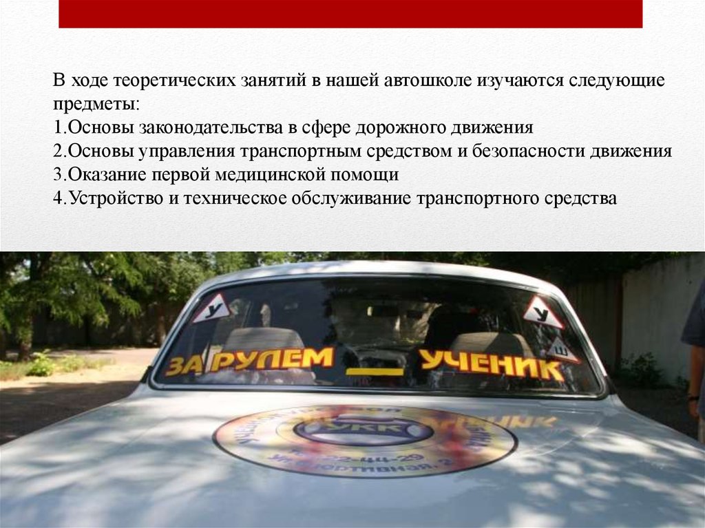 В ходе теоретических занятий в нашей автошколе изучаются следующиепредметы: