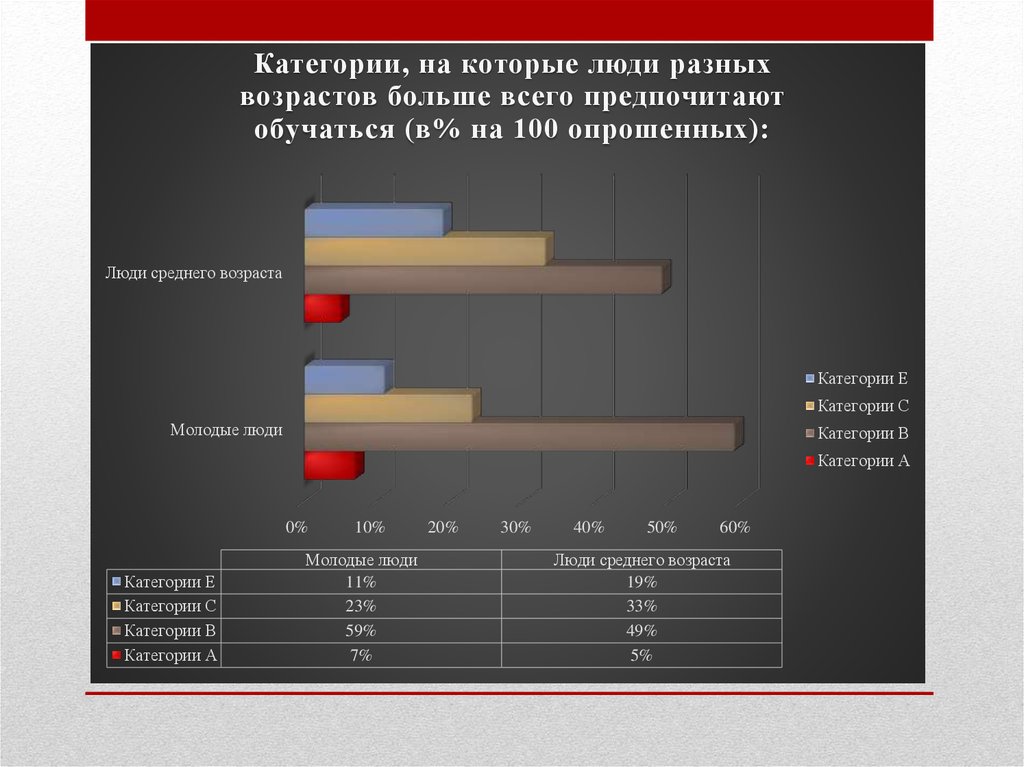 Категории, на которые люди разныхвозрастов больше всего предпочитают