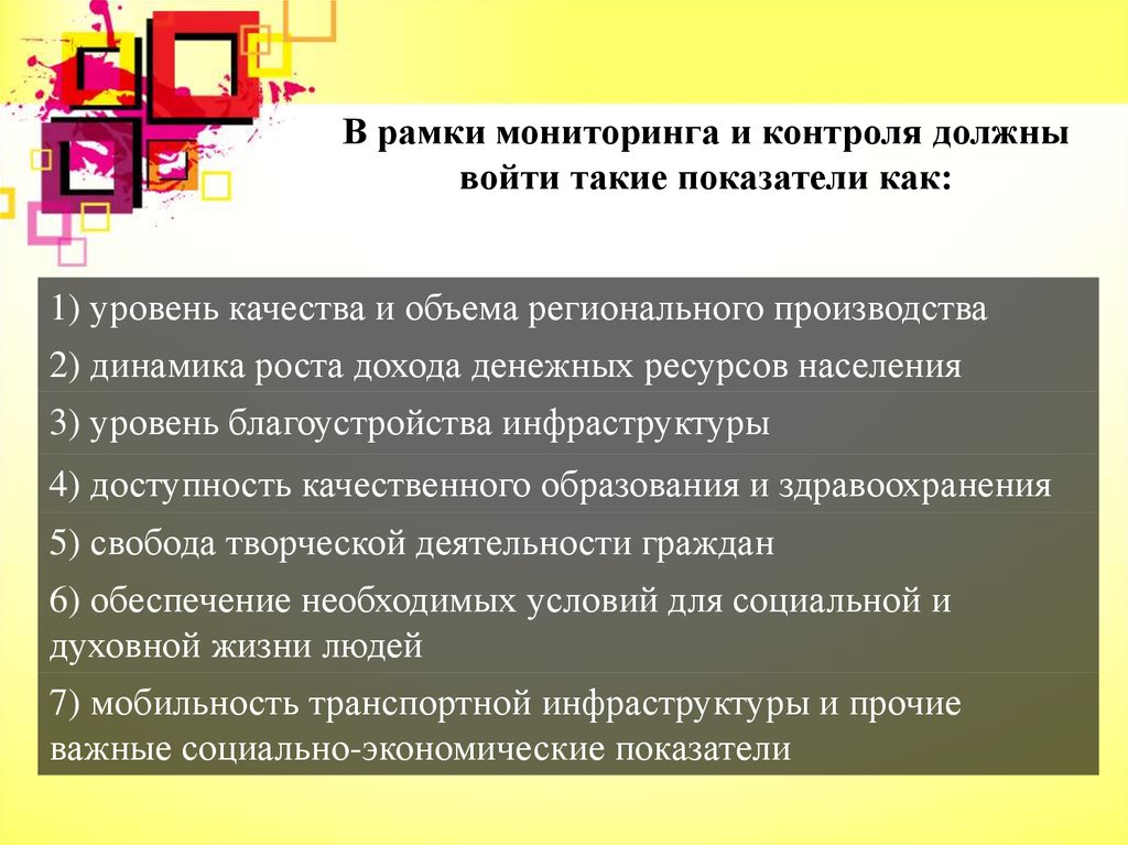 В рамки мониторинга и контроля должнывойти такие показатели как: