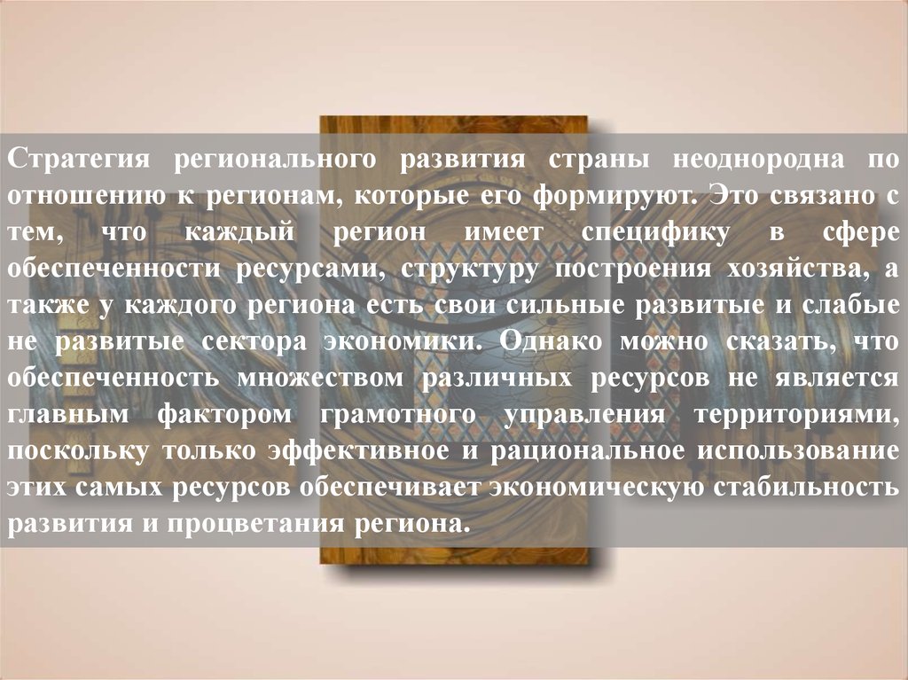 Стратегия регионального развития страны неоднородна поотношению к регионам, которые его формируют. Это связано с