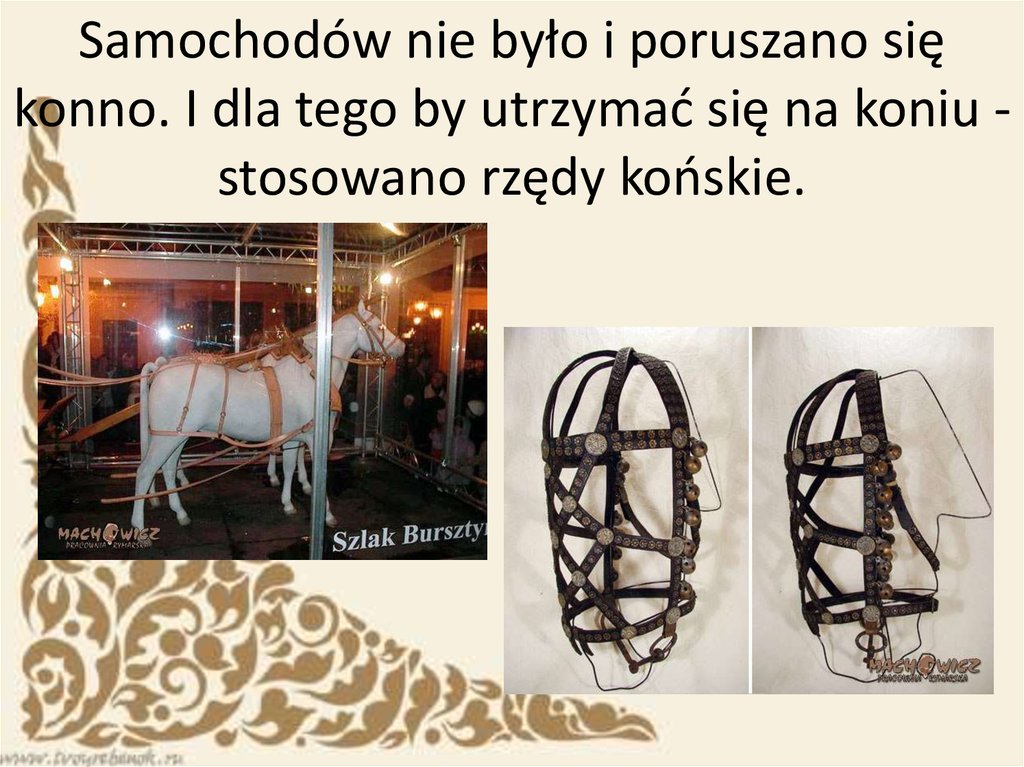 Samochodów nie było i poruszano siękonno. I dla tego by utrzymać się na koniu stosowano rzędy końskie.