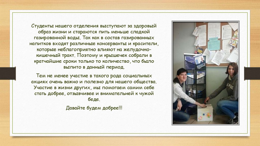 Студенты нашего отделения выступают за здоровыйобраз жизни и стараются пить меньше сладкой