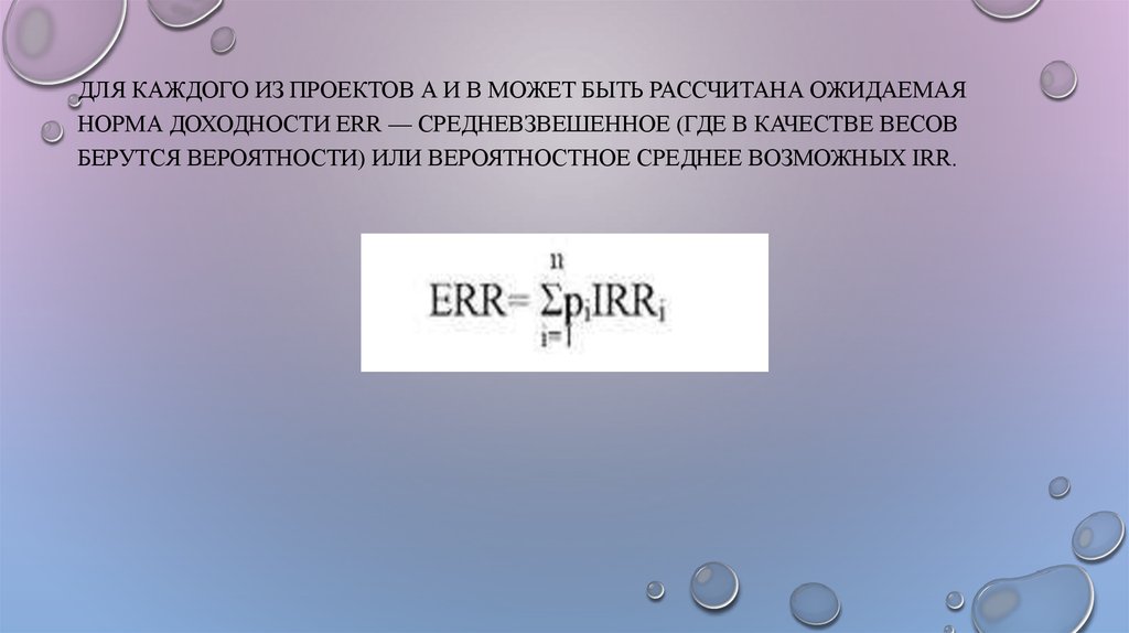 ДЛЯ КАЖДОГО ИЗ ПРОЕКТОВ А И В МОЖЕТ БЫТЬ РАССЧИТАНА ОЖИДАЕМАЯНОРМА ДОХОДНОСТИ ERR — СРЕДНЕВЗВЕШЕННОЕ (ГДЕ В КАЧЕСТВЕ ВЕСОВ