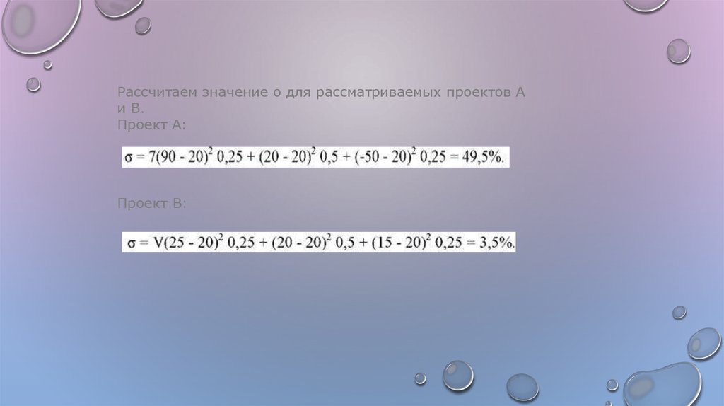 Рассчитаем значение о для рассматриваемых проектов Аи В.