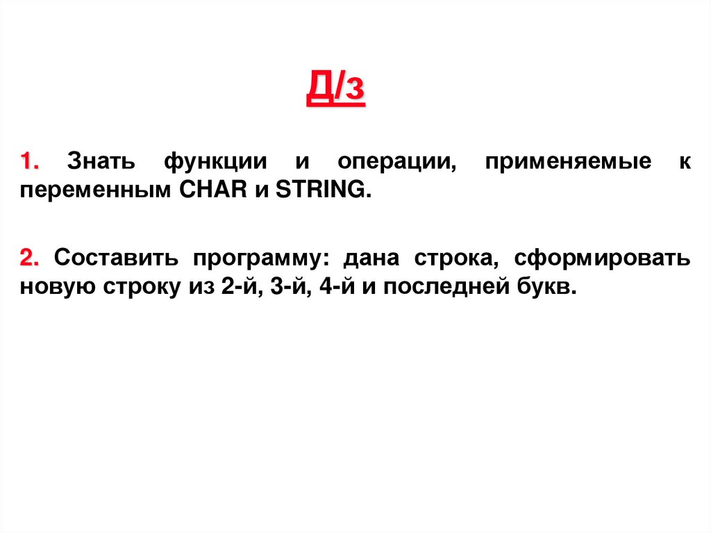 Д/з1. Знать функции и операции,