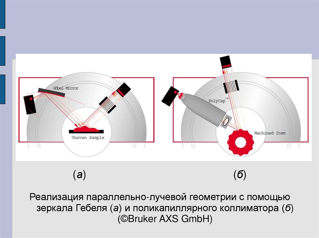 зеркала Гебеля (а) и поликапиллярного коллиматора (б)