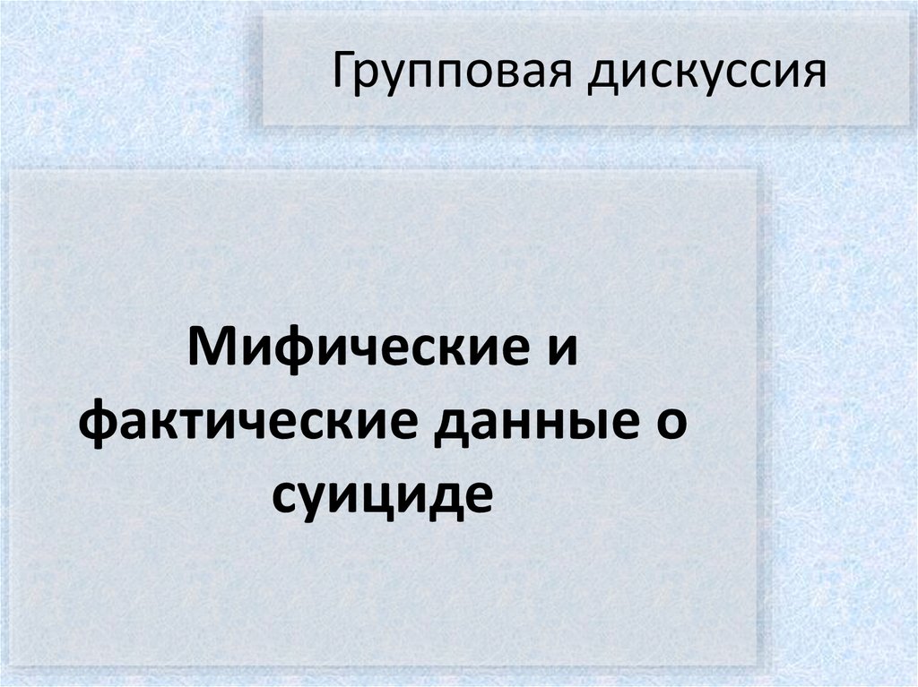 Групповая дискуссия. Мифические и фактические данные о суициде
