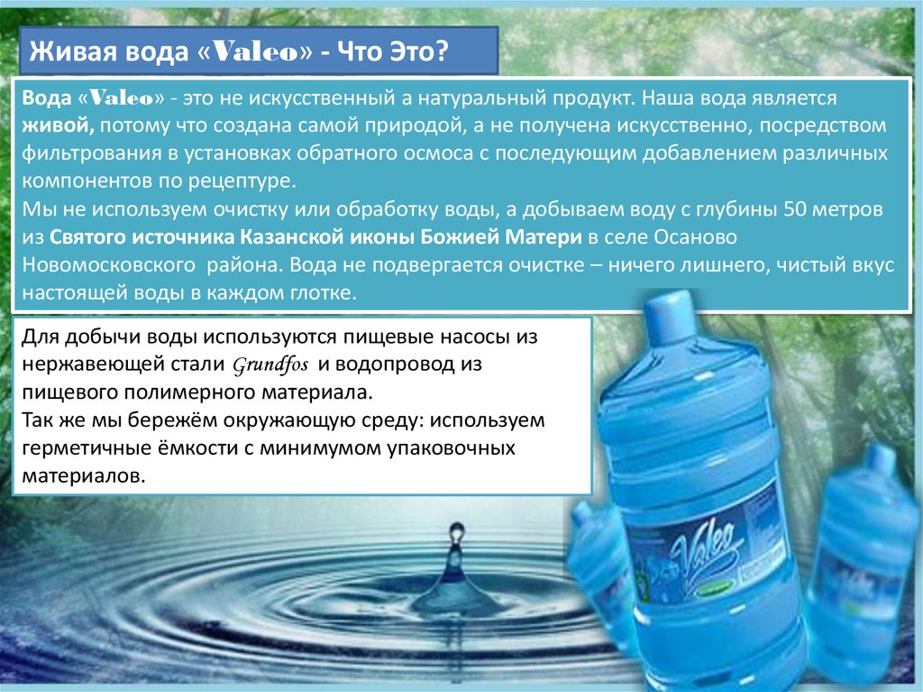 Живая вода «Valeo» - Что Это?Вода «Valeo» - это не искусственный а натуральный продукт. Наша вода является