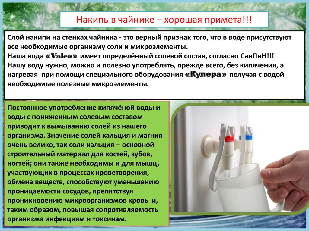 систем. Поэтому наличие накипи в чайнике свидетельствует о качественном солевом