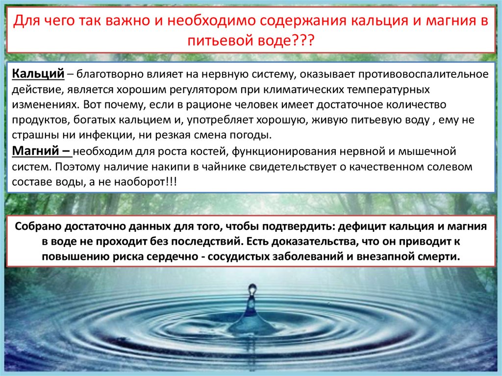 Для чего так важно и необходимо содержания кальция и магния впитьевой воде???