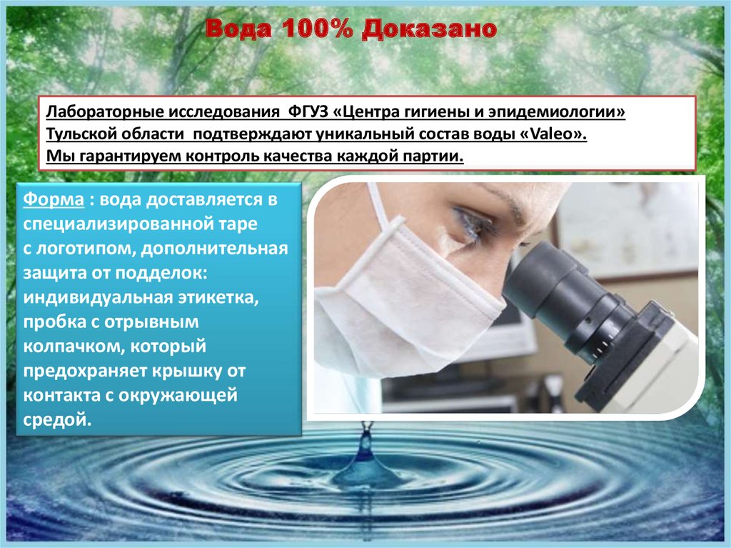 Тульской области подтверждают уникальный состав воды «Valeo».
