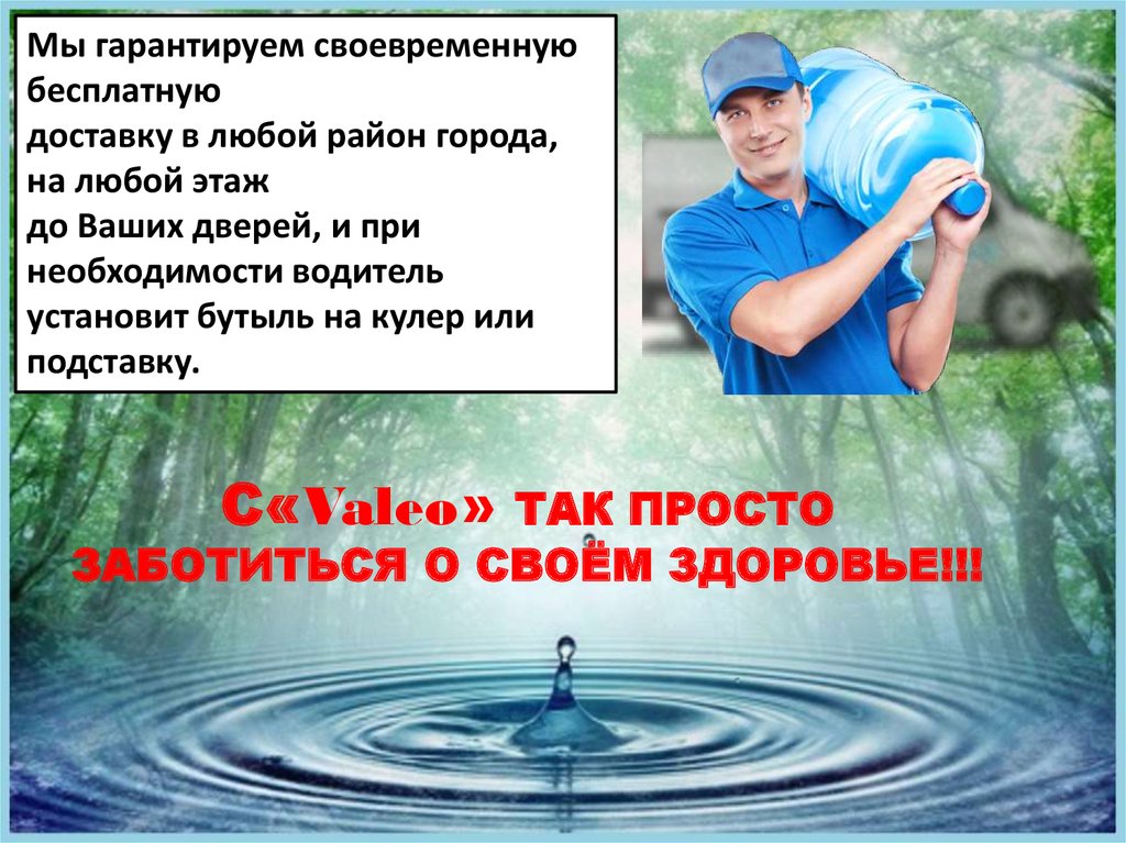 Вода «Valeo» – залог Вашего здоровья и красоты!!!Наша вода»Valeo» - это не просто чистая вода. Это природная целебная вода,