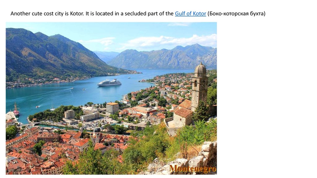 Another cute cost city is Kotor. It is located in a secluded part of the Gulf of Kotor (Боко-которская бухта)9.