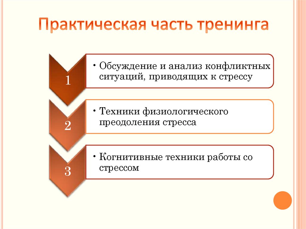- Основная часть: сбор информации о стрессорах, отработка