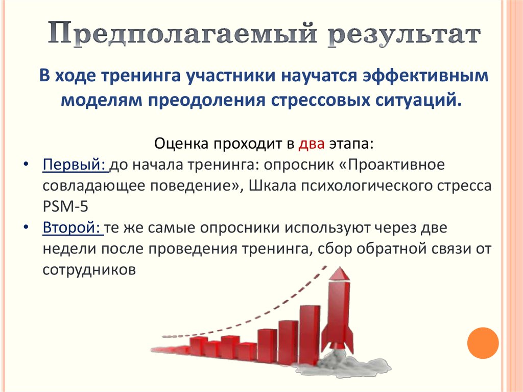 В ходе тренинга участники научатся эффективныммоделям преодоления стрессовых ситуаций.