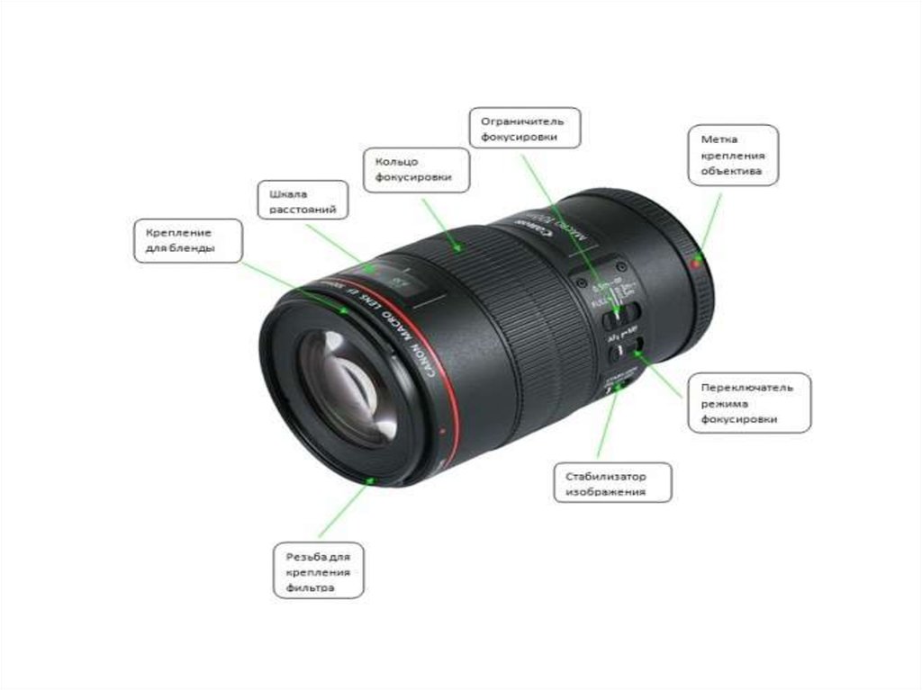 2. Устройство сменного объектива (визуально различимы три группы линз)