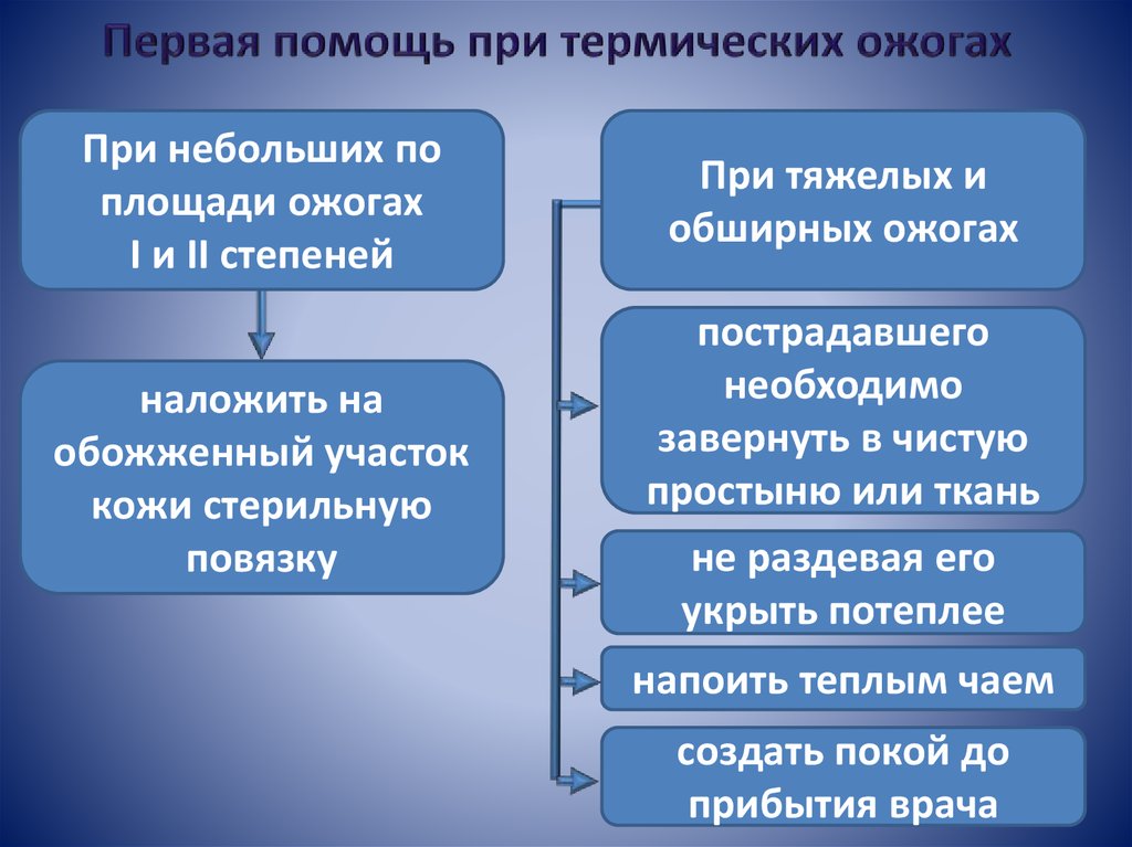 Первая помощь при термических ожогахВо избежание