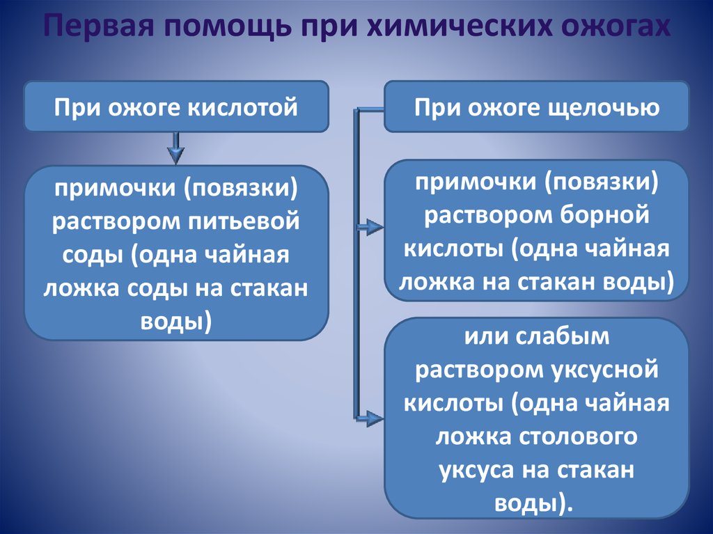 Первая помощь при химических ожогахПри ожоге кислотой